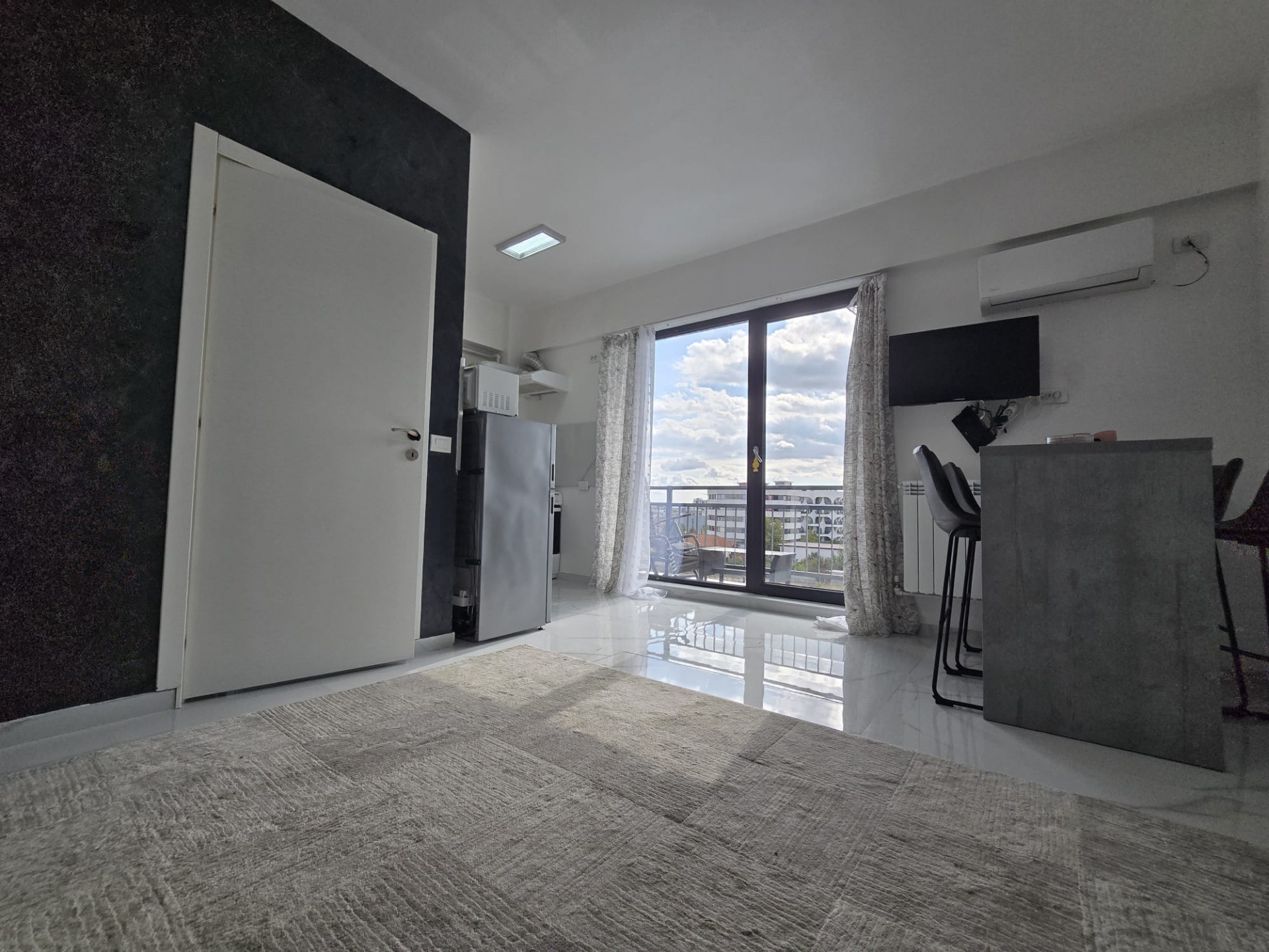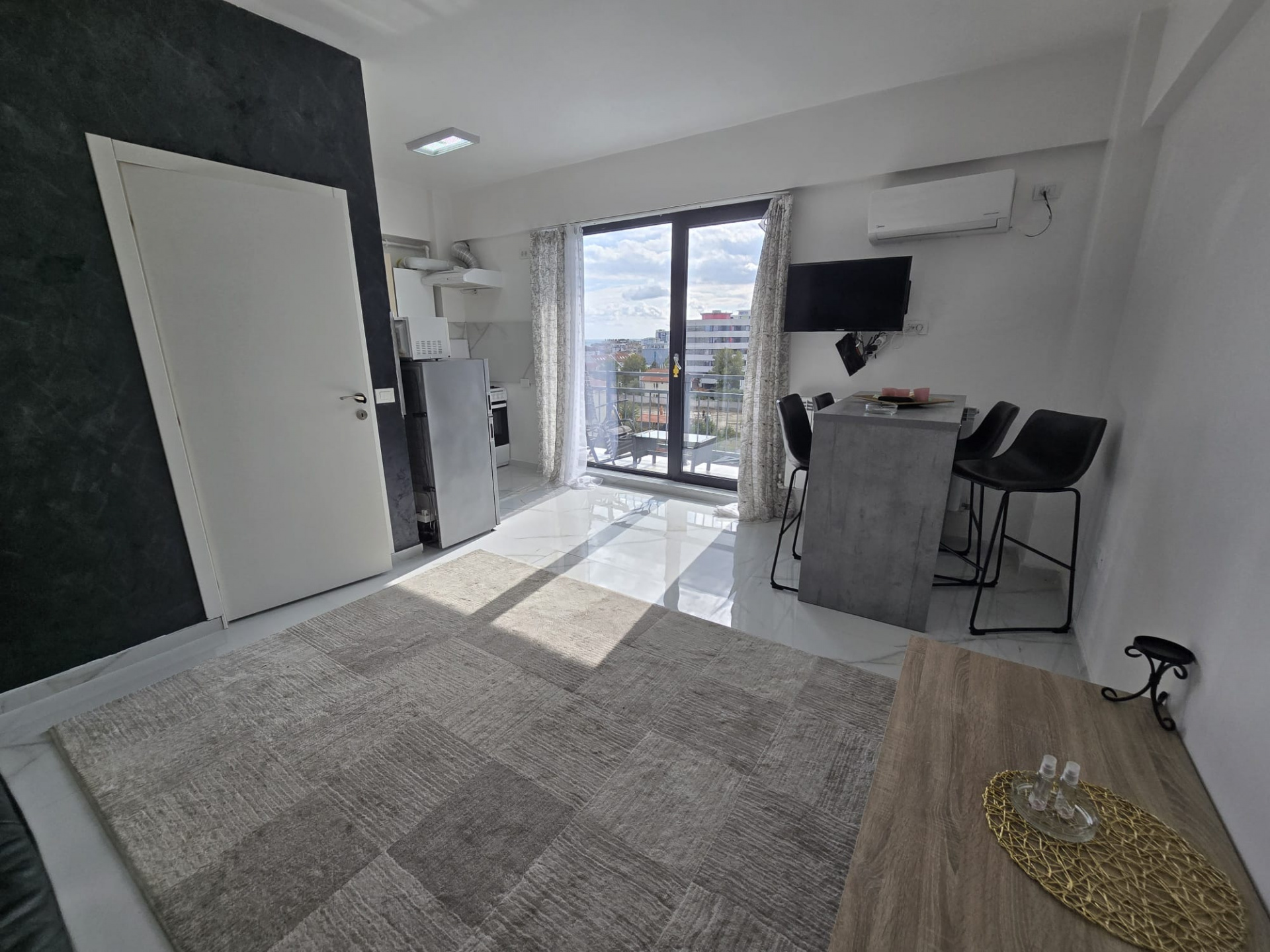 📍 Living open space cu bucătărie – spațiu prietenos, perfect pentru serile cu prietenii;